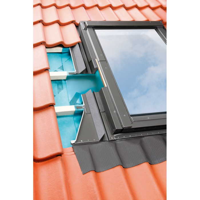 Uniwersalny kołnierz uszczelniający może być stosowany do pokryć dachowych o wysokości profilu do 90 mm. Umożliwia dodatkowo docieplenie okien dachowych ponad poziomem łat. Posiada przyklejony od wewnątrz elastyczny materiał dociepleniowy, który szczelnie przylega do ościeżnicy okna dzięki czemu po zamontowaniu tworzy termoizolacyjną ramę.