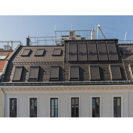 Rolety zewnętrzne Roto idealnie sprawdzają się w oknach dachowych na poddaszu, zapewniając optymalną temperaturę i odpowiedni dopływ światła w każdym pomieszczeniu przez cały rok. Zbudowane z dwuściennych lameli, latem zapewnią przyjemny chłód, a zimą ciepło.